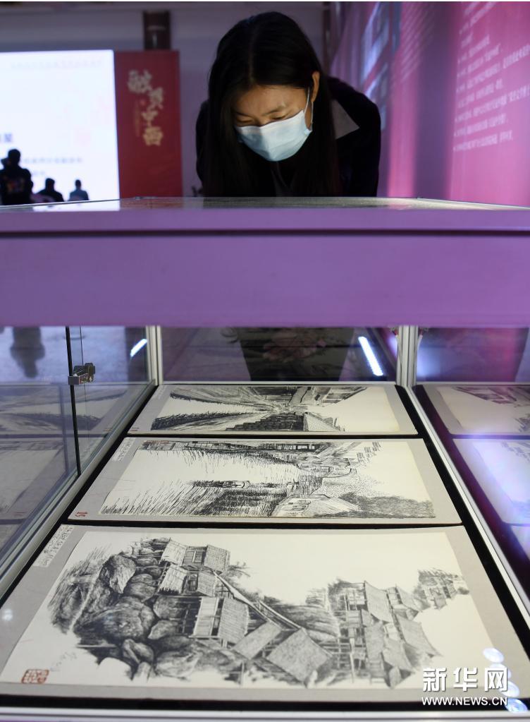 4月8日,“丹青艺境·致敬百年——吴冠中、朱法鹏艺术展”在北京民族文化宫开幕,展出两位艺术家的百余件书画精品。这是观众在展览上参观吴冠中写生手稿。新华社记者金良快摄