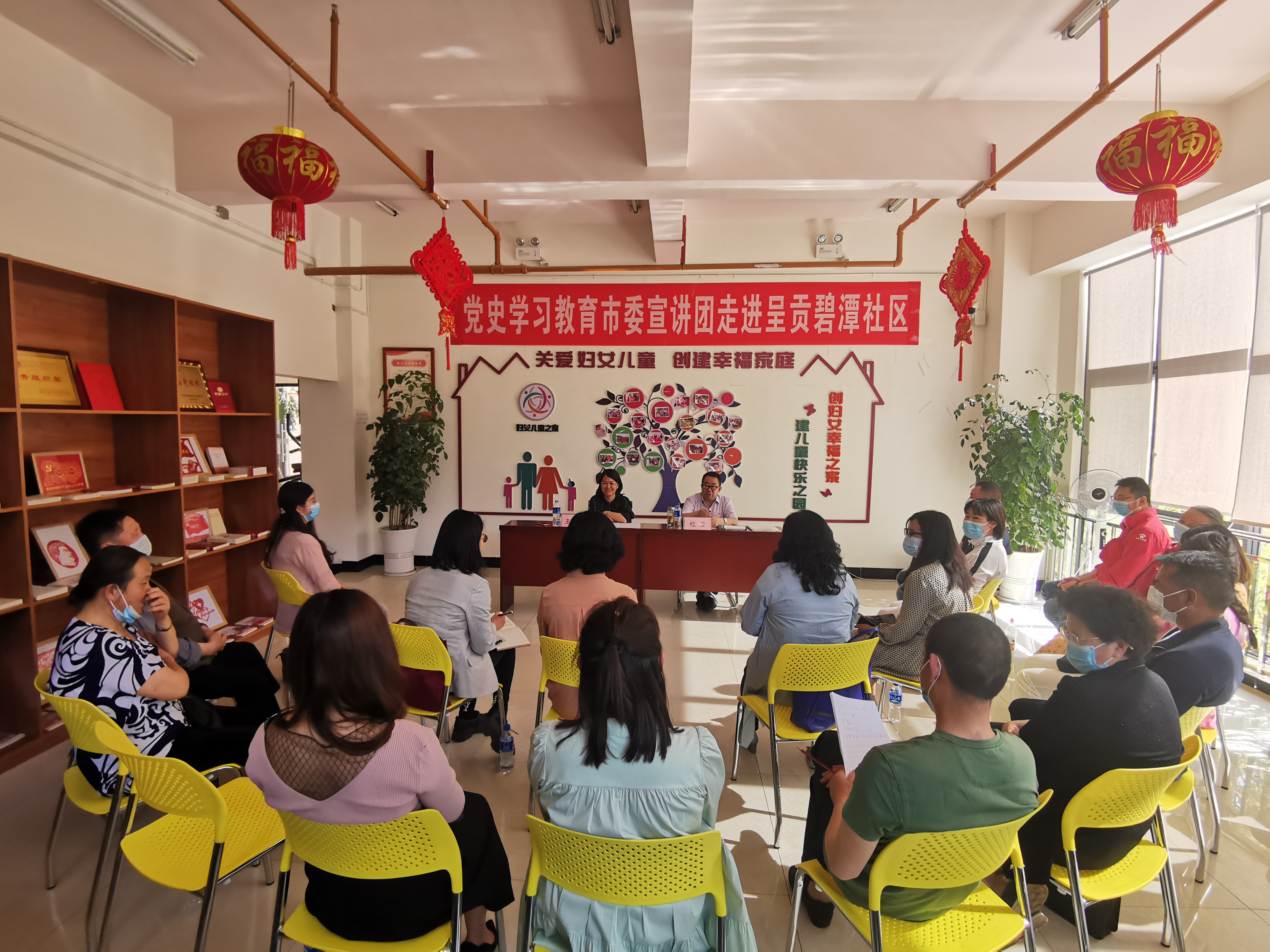 4月22日,党史学习教育市委宣讲团成员桂立到呈贡区洛龙街道碧潭社区开展党史学习面对面宣讲,并对街道、社区党员群众如何开展好党史学习教育进行互动交流。