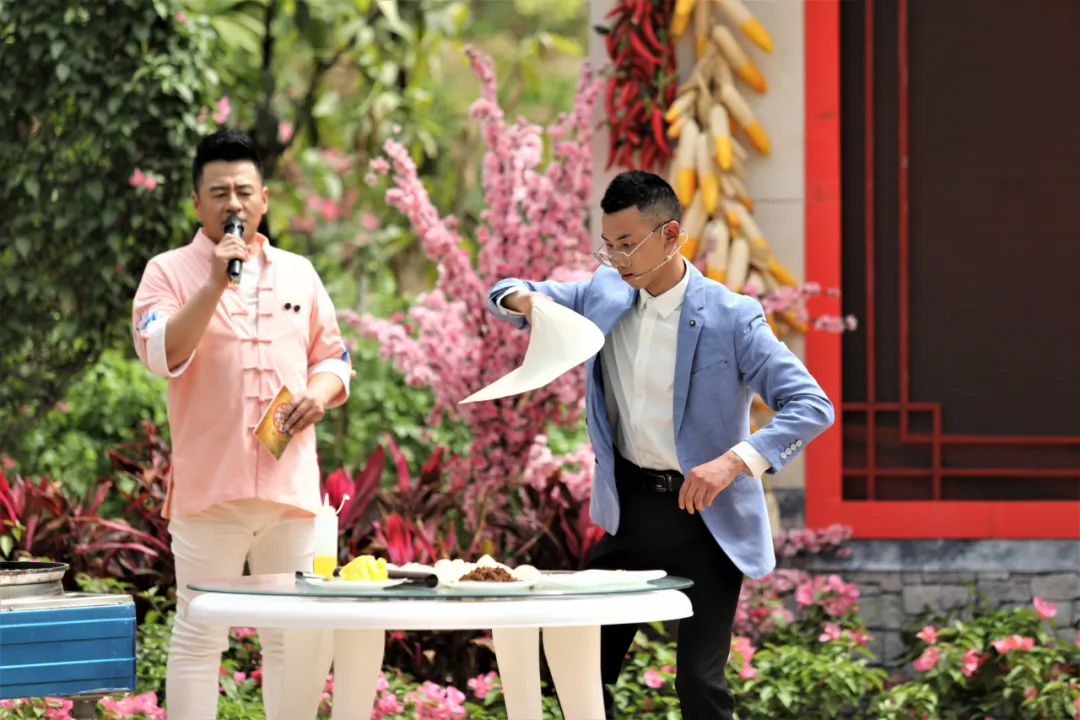 猴哥飞饼花样多,引来主持小毕哥,嘉宾主持齐上阵,逗得观众乐呵呵!这回猴哥现真身了,原来是飞饼达人周伟呀!
