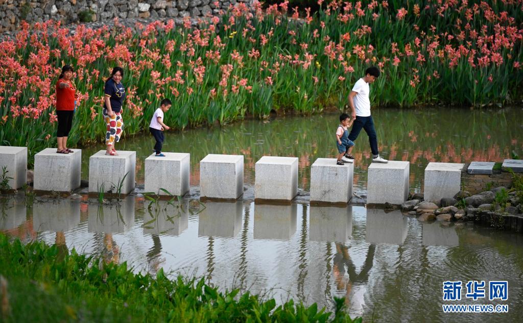 5月3日,游人在广西柳州市柳东新区滨江生态公园里游玩。新华社发(黎寒池 摄)