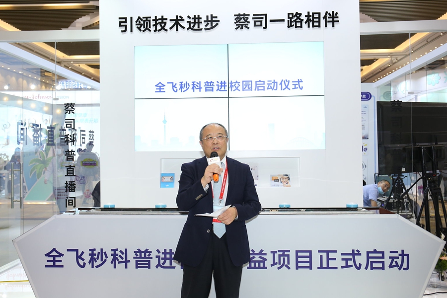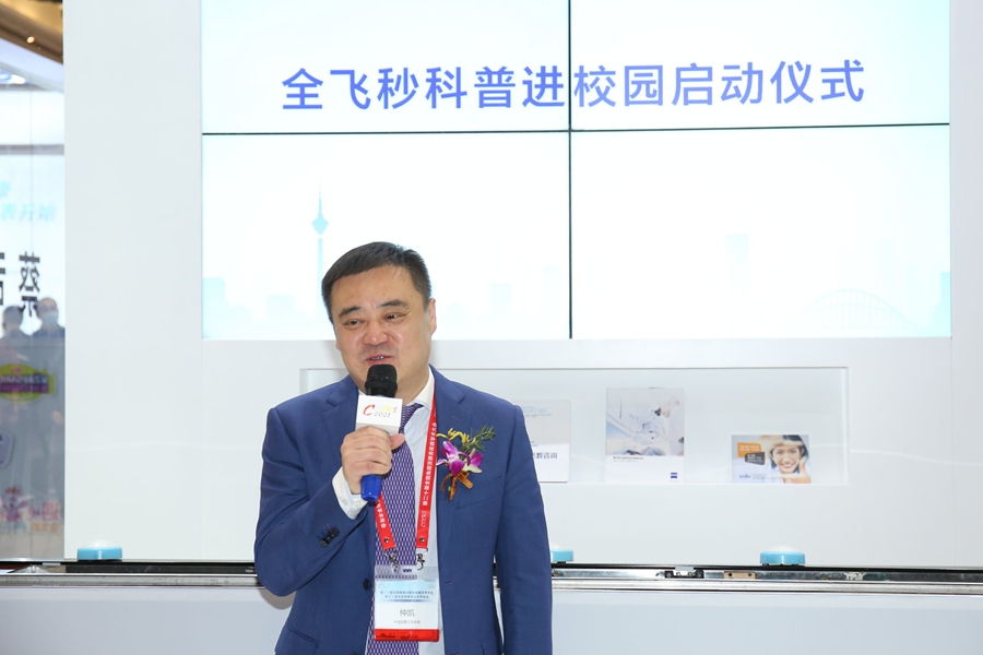 仲恺 致辞并表示, “ 中国民族卫生协会 携手 蔡司, 已共同走过了两年公益之路。 从全飞秒微笑中国行和全飞秒微笑中国榜样两个项目 ,到现在的 全飞秒科普进校园公益活动 , 我们通过科普宣传让更多人 重视眼健康。 ”