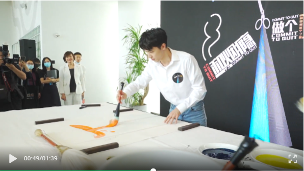 此外,中国网还承制了“和烟瘾做个了断”海报,在世卫组织举办的“《五百笔+承诺戒烟》线下实验艺术互动活动”中落地推广。