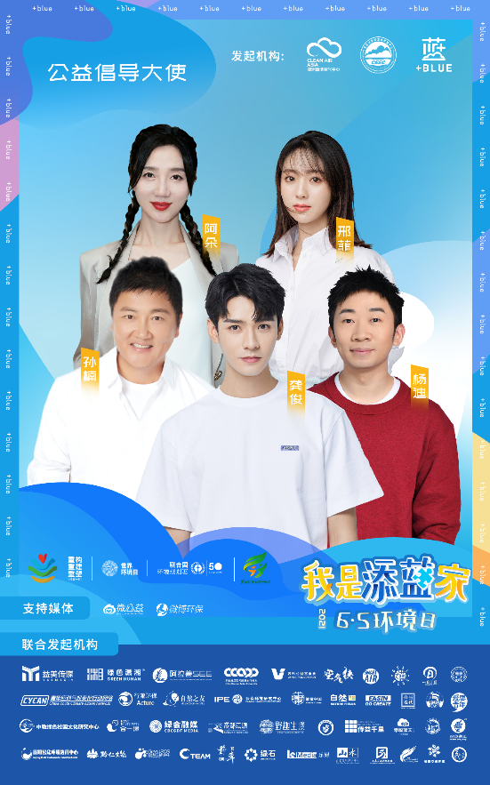 龚俊、孙楠、杨迪、邢菲、阿朵等明星艺人,以公益倡导大使身份发声支持“我是添蓝家”活动,他们号召粉丝和公众成为“添蓝家”,关注空气质量和气候变化,用个人的行动,为蓝天,为气候,贡献力量。