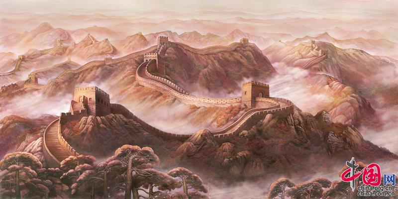《民族脊梁》展现万里长城横亘在中华辽阔的土地上,如盘旋于群山之巅的巨龙,彰显中华民族不屈不挠的精神和守护和平的胸怀,是民族精神之长城。