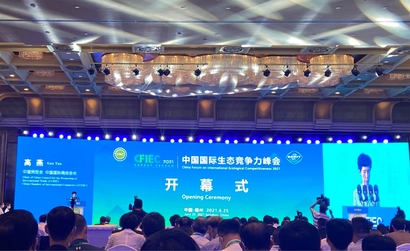 中国网6月26日讯 由中国贸促会、全国政协人口资源环境委员会、国家林业和草原局、江西省人民政府联合主办的 2021中国国际生态竞争力峰会在江西省赣州市成功举行。中国贸促会会长、中国国际商会会长高燕,全国政协人口资源环境委员会副主任黄跃金,江西省委常委、赣州市委书记吴忠琼等出席并致辞。江西省政府副省长胡强主持开幕式。上合组织副秘书长阿泽姆巴基耶夫,以及来自俄罗斯、美国、日本、泰国、斯里兰卡、土耳其、刚果等国使节和政企代表出席开幕式。