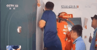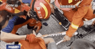 消防员立即用液压扩张器在孩子头部上方进行扩张。为防止孩子脱困时发生坠落,另一位消防员站在椅子上托住孩子。很快,男孩脱困,消防员立即将他抱到空气更流通的客厅内施救,并不停喊男孩的名字。