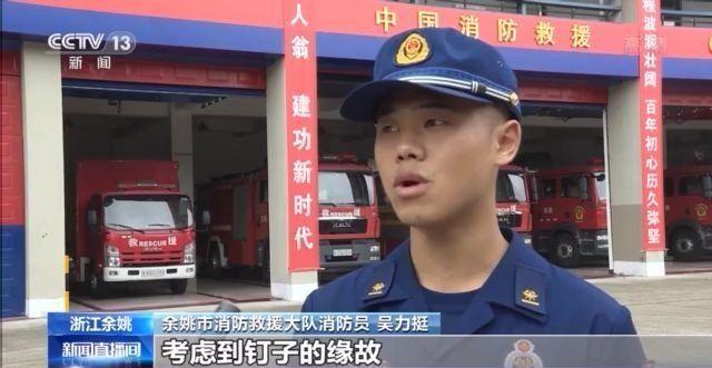 余姚市消防救援大队凤山站消防员 吴力挺:一开始我们采取的是液压扩张钳,想把脚踏和那个杆给扩开,就是考虑到钉子的缘故,小孩子痛了。