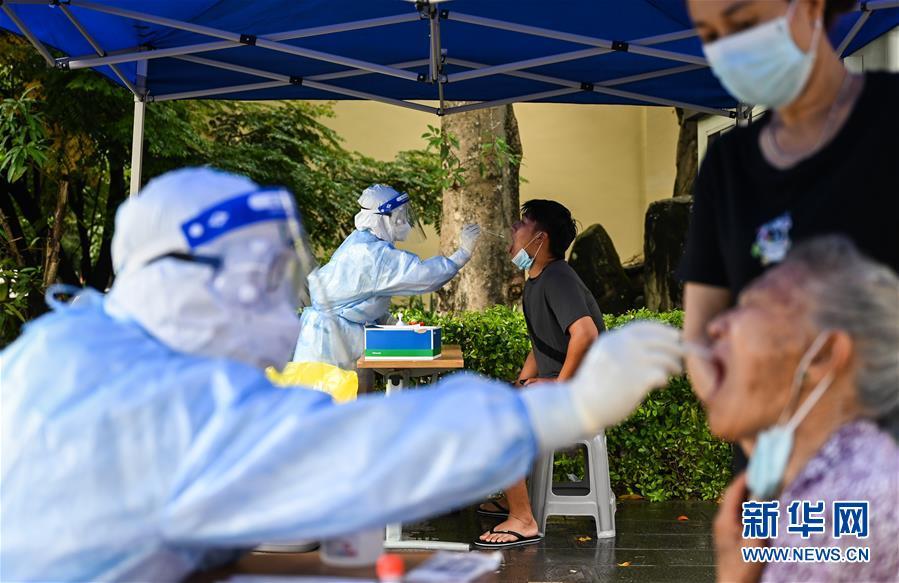 7月7日,防疫人员在为瑞丽居民进行核酸检测。 新华社记者 王冠森 摄
