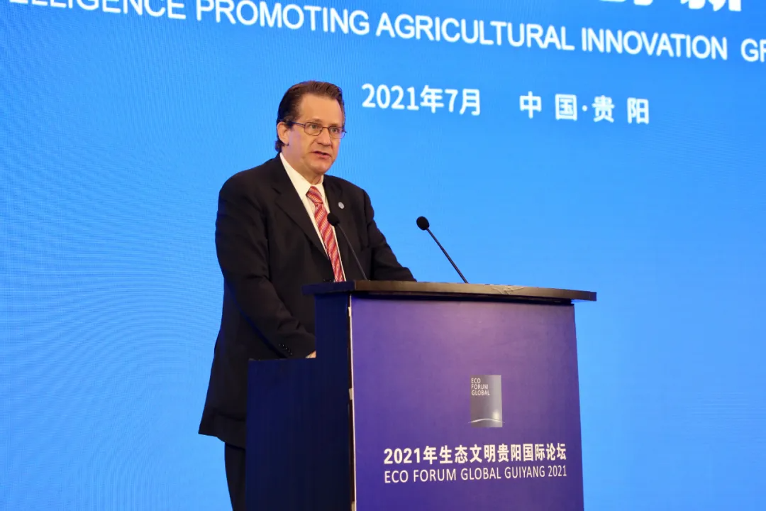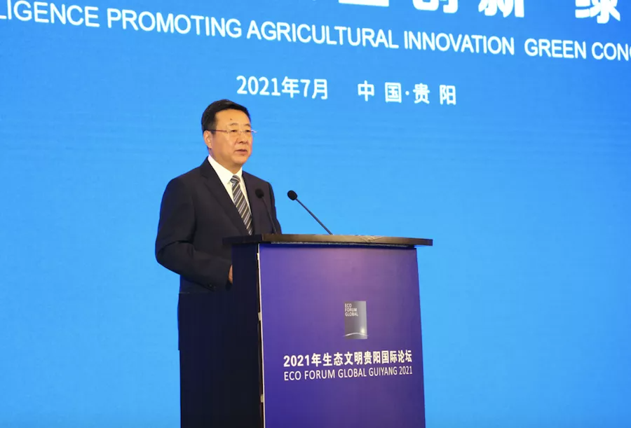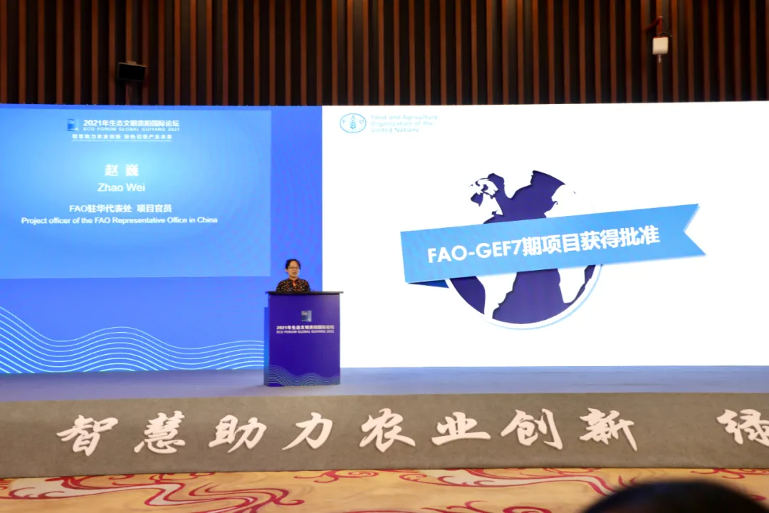 7月13日,中国全球重要农业文化遗产保护与利用助力脱贫攻坚和农民增收研究成果等六项农业绿色发展成果在2021年生态文明贵阳国际论坛农业主题论坛上发布。©FAO/Peiling Gan
