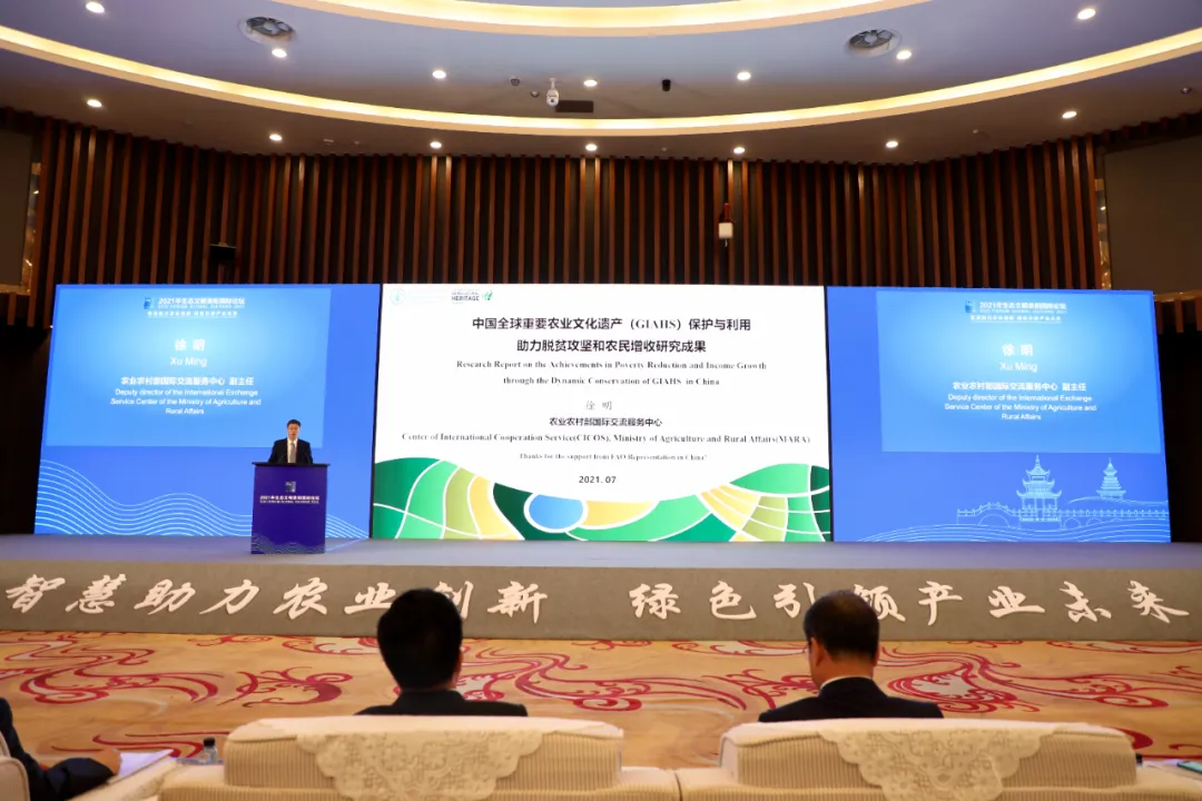 7月13日,2021年生态文明贵阳国际论坛农业主题论坛在贵州省贵阳市召开。会议期间,中国农业农村部国际交流服务中心与联合国粮农组织驻华代表处共同发布了中国全球重要农业文化遗产保护与利用助力脱贫攻坚和农民增收研究成果。