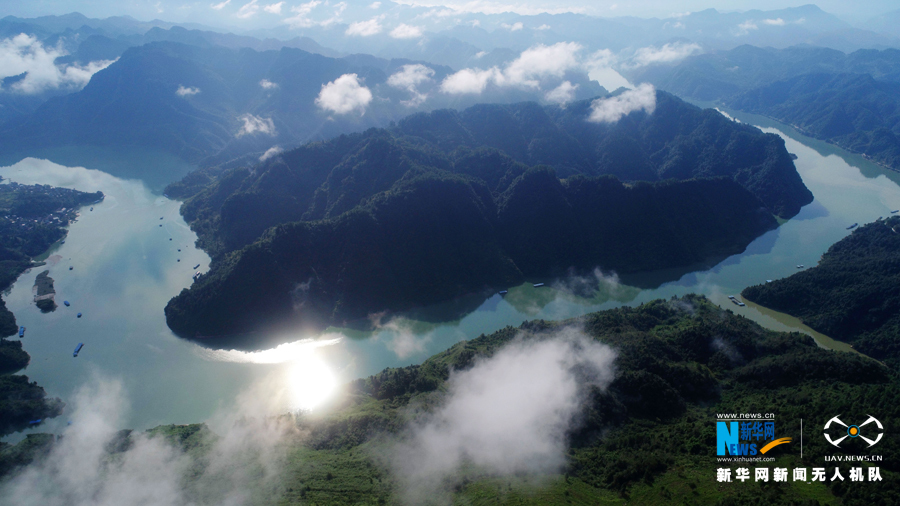 航拍风光旖旎的酉水河。一江碧水,两岸青山,风景如画。新华网发(陈碧生 摄)