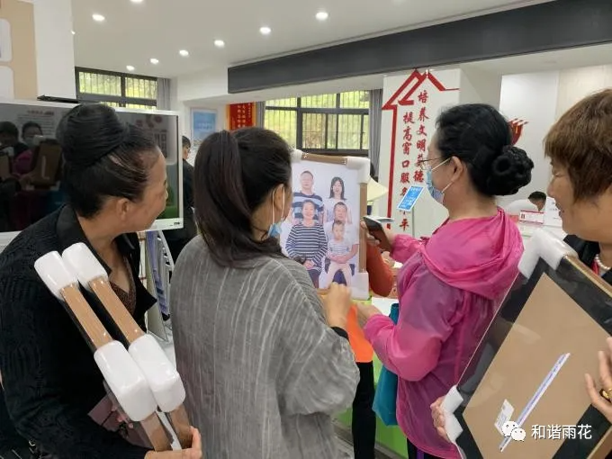 2021年,中国共产党迎来了百年华诞,在传统节日中秋佳节到来之际,明潭社区开展了以“我为群众办实事,党旗暖心笑脸红”为主题的全家福拍摄活动,免费为辖区100户居民家庭拍摄了一张温馨喜庆的全家合影,用镜头记录和诠释家庭亲情,传递家国情怀。