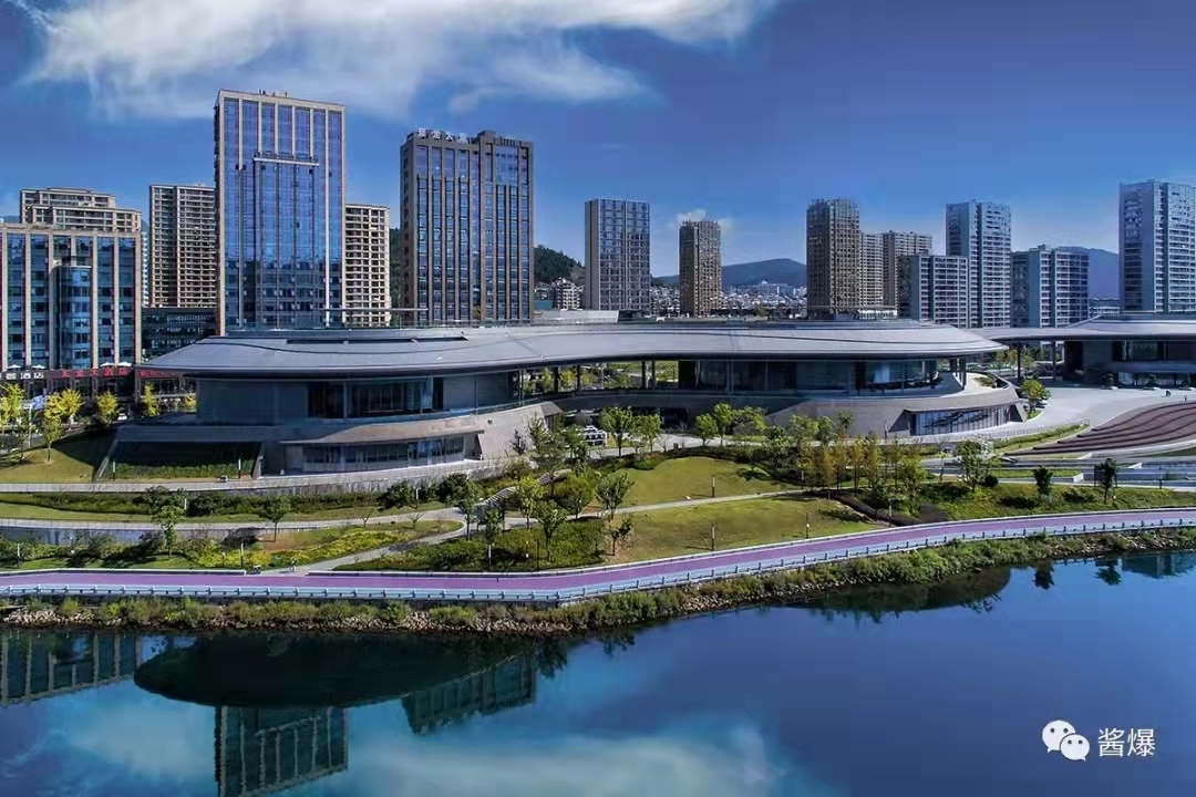 总面积约为两万六千平方米。曲线型的建筑群宛如一条巨型的飘带,在山水之间流动,跳跃在迷人的建德新安江畔。