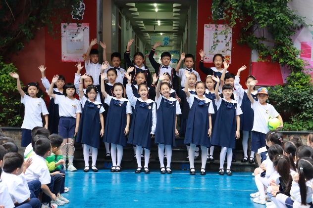 迎着凉爽的秋风,成都市龙王庙正街小学学子穿上了崭新的校服进入校园。本次校服采用了新的设计和面料,孩子们穿上新校服可以更加舒适地活动。四年级的大哥哥大姐姐们,特意穿上了不同款式的校服进行展示。有活力四射的运动装、有温文儒雅的春秋裙装,还有文质彬彬的西装。在校园这个“秀场”上,“模特儿们”有力的步伐走出了自信、走出了朝气,赢得了同学们的齐齐称赞。