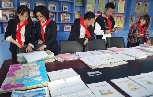 入队仪式结束后,与会的领导和辅导员们观看校园展板、队室及少队工作资料。随后进入到了行政楼五楼学术厅观摩由五七中队举行的“致敬红领巾 争当好队员”主题队课及该校的少队活动视频。在“致敬红领巾 争当好队员”主题队课中孩子们的活动庄严而隆重,特别是手语表演《强国一代有我在》中,孩子们铿锵有力的表演进一步体现了少先队员们热爱祖国,热爱学习的思想。