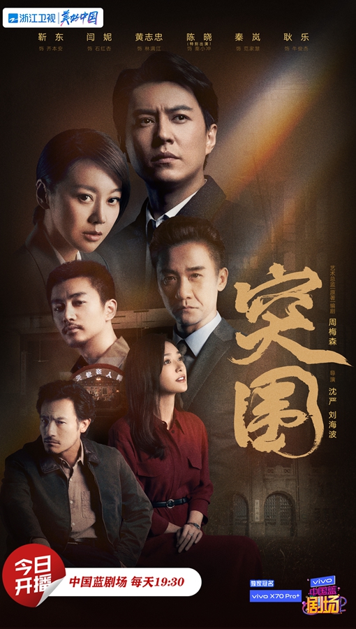 由周梅森编剧,沈严、刘海波执导,靳东、闫妮、黄志忠领衔主演,陈晓特别出演,秦岚,耿乐,田雷,黄品沅,潘之琳等领衔主演的现实主义精品剧《突围》将于今天19:30登陆浙江卫视中国蓝剧场。
