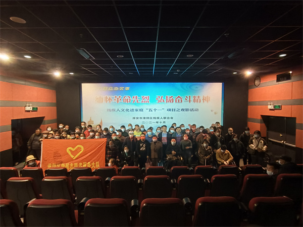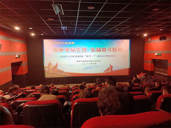 据了解,近日淮阴区残联根据市残联相关指示及“厚植红色土壤,弘扬助残精神”要求,组织各镇街道开展残疾人文化进家庭“五个一”项目观影活动,分八个场次观影。25日观看的红色影片《长津湖》,是系列活动之一,旨在引导残疾人听党话、跟党走、感党恩,增强残疾群众生活幸福指数及存在感、获得感,让残疾朋友们更好地融入社会大家庭。