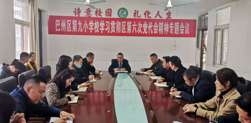 为深入学习贯彻巴中市巴州区第六次党代会精神,11月4日下午,巴州区九小党支部组织全体党员、行政领导班子成员三步骤学习贯彻巴州区第六次党代会精神。