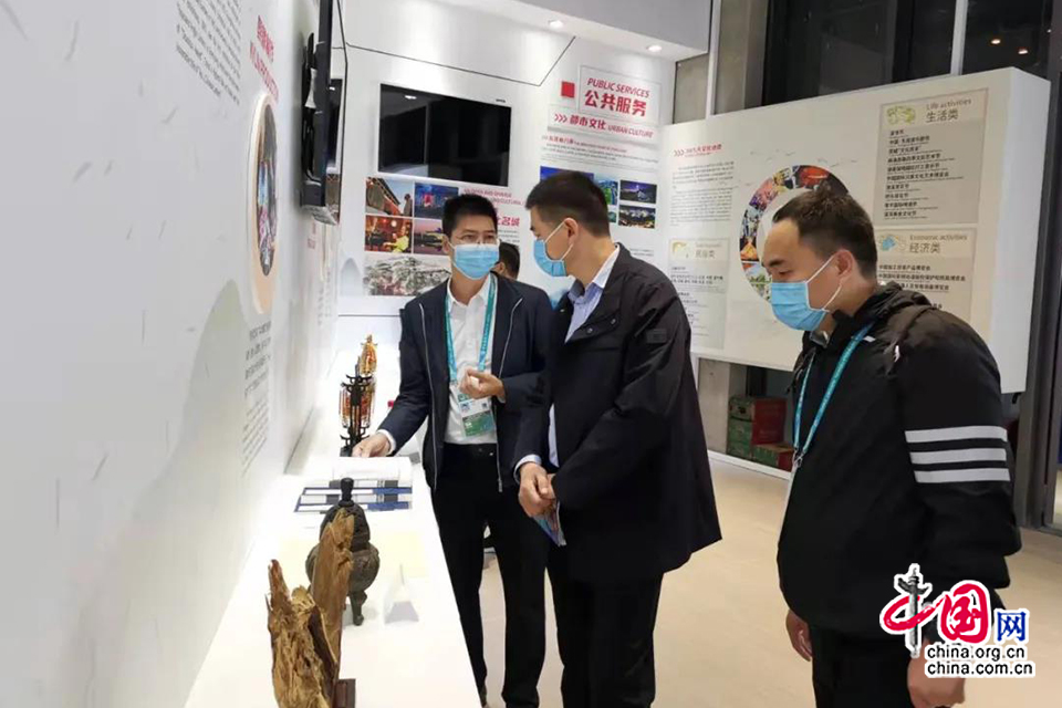 在进博会东莞形象展览馆展位中可以看到东莞市大岭山镇鸡翅岭村的香胆、香炉、香产品等展品。