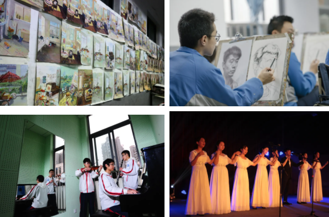 成熟的艺术特色校本课程体系,全学段视野下的课程目标,全资源视野下的课程内容,全时空视野下课程评价,让三年的艺术专业训练科学、有序。既有满足高考需求的基础技能课程,又有适应未来发展方向的方向选修课程,而拓展类课程,为艺术学习搭建起实践与创新的舞台。