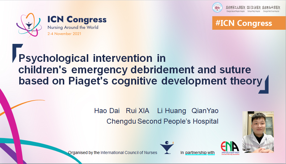在本次护理学术盛会上,成都市第二人民医院急诊科副护士长夏蕊就“新冠疫情下ICS框架指导的群体伤应急预案”进行大会发言;副护士长代浩就儿童急诊清创的心理干预进行了经验分享,更是以壁报的形式将成都市第二人民医院互联网+智慧医院的发展向全球护理同行展示。
