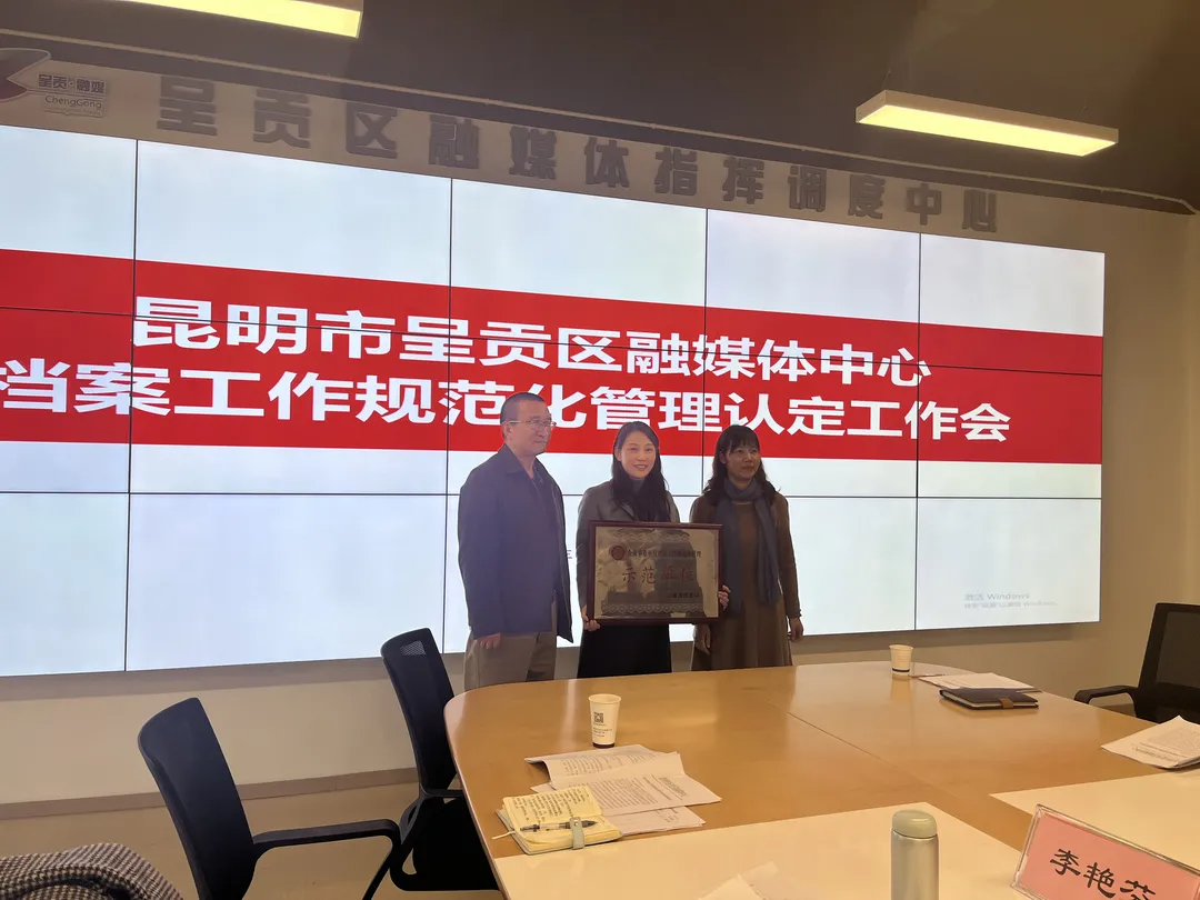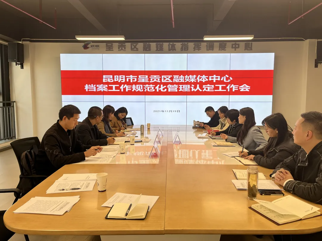 11月19日,受云南省档案局的委托,昆明市档案局、呈贡区档案局组成认定组到呈贡区融媒体中心档案工作规范化管理进行考核认定。