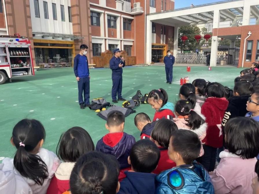 活动开始前,消防员为全体幼儿园孩子展示消防服、消防鞋、腰带、头盔等消防器材,讲解火场逃生的知识,并让孩子们穿上消防服,亲自体会成为一名消防员的感觉。
