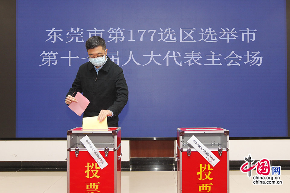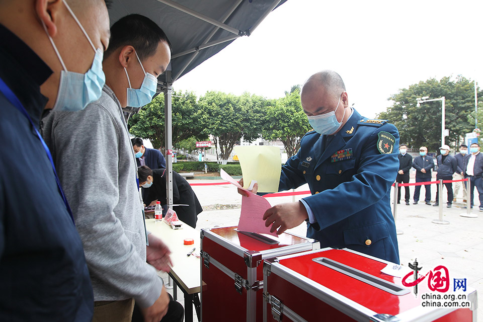 在东莞市第175选区选举市第十七届人大代表圩镇社区居民小组西城文化广场投票站、樟木头镇第十八届人大代表圩镇社区居民小组西城文化广场投票站,市委常委、东莞军分区司令员卢建军以普通选民身份参加所在选区人大代表投票选举,同其他选民一起行使宪法和选举法赋予的民主权利,在领取并认真填写选票后,向票箱投下了庄严神圣的一票。