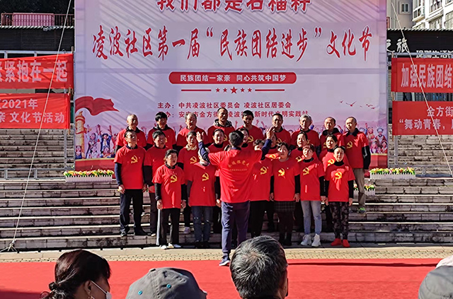 据了解,凌波社区共有白族、布依族、傣族等20个少数民族。作为金方街道中心城市社区,优越的地理环境和人文情怀,铸就了“民族团结之歌唱响凌波”这一工作理念,积极构建互嵌式社区结构。社区唱好“一节两队三室多试点”共鸣和弦,凝聚共识、传递温暖、播洒希望,铸牢中华民族共同体意识,唱响民族团结一家亲的新时代歌曲。