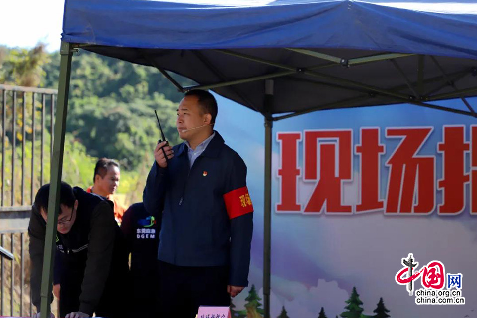 随着现场一声指令,客天下产业园林演练正式开始。镇委副书记邓小强作为现场指挥官开始指挥火灾救援行动。在接到警情通知后,大岭山镇启动森林火灾Ⅳ级响应,镇公安分局、交警大队、大岭山森林公园半专业扑火队、中西医结合医院立即组织人员前往现场救援。
