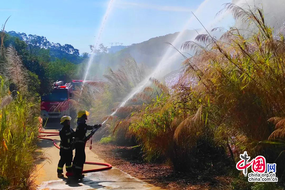 市应急局接到报告后,通知市森林消防出动。根据现场火灾形势,救援行动先后派出大岭山消防队、半专业扑火队、市森林消防救援大队等赶赴现场开展救援,同时利用无人机进行侦察,运输救援物资,并利用直升机进行空中灭火。