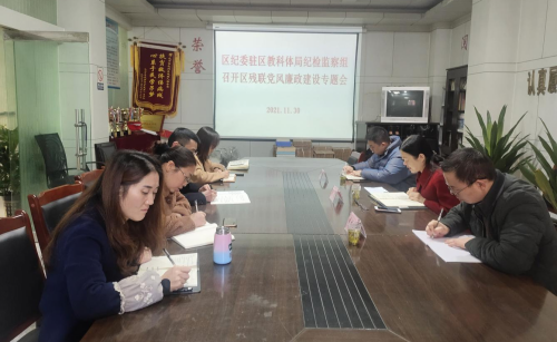 11月30日上午,巴中市巴州区纪委监委驻教科体局纪检监察组长马青带队到区残联召开2021年党风廉政建设专题会,区残联党组班子成员参加会议。