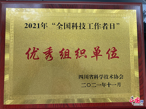 2021年11月25日,四川省科协发文通报,在今年第五个“全国科技工作者日”,协会在四川省科协领导下围绕“众新向党、自立自强”为主题开展的系列活动中,荣获“四川省科协系统2021年“全国科技工作者日”优秀组织单位”称号。