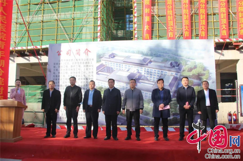 12月3日上午,菏泽市牡丹人民医院(菏泽市中心医院)青年湖分院项目封顶仪式举行。该项目占地24亩,按二级医院标准设计,设计床位300张,总投资1.5亿元。现场,牡丹区卫生健康局党组书记、局长邢继卿,区公共卫生服务中心主任王庆国,南城办事处书记李景雷,菏泽市牡丹人民医院党委书记李华伟、院长高庆祥,菏泽城市发展集团党委书记李凡建,菏泽城市发展集团总经理赵雷,菏泽千瑞公司总经理陈启文出席封顶仪式。