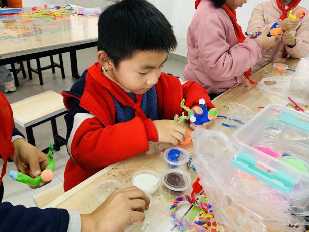 本次活动,同学们的参与率达到了100%。一、四、五年级在美术耿老师和廖老师的带领下以个人为单位创作冬奥会主题绘画作品。二年级和三年级的孩子们在美术唐老师和成老师的带领下以立体作品为创作形式,让学生们收集废旧纸箱、泡沫等材料,加以铁丝、粘土等材料制作出一件件的雪上运动场景。