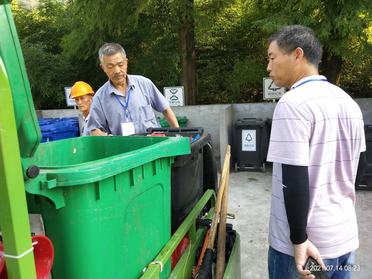 依托村、社区志愿者的志愿力量,鼓励群众积极参与垃圾分类志愿服务,主动进社区开展入户宣传、定时定点指导、环境卫生整治等工作,引导群众提高垃圾分类知晓率、参与率和准确率,以宣促管让新时代文明实践遍地开花。