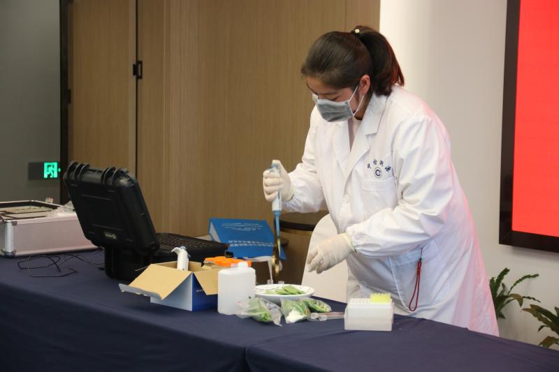 随后,溧水区疾控中心工作人员检查现场,模拟流行病学调查,对留样冰箱里的食品和对食堂从业人员进行测试采样。与此同时,溧水区快检中心人员对留样的四季豆进行快检,排查是否含有毒素。