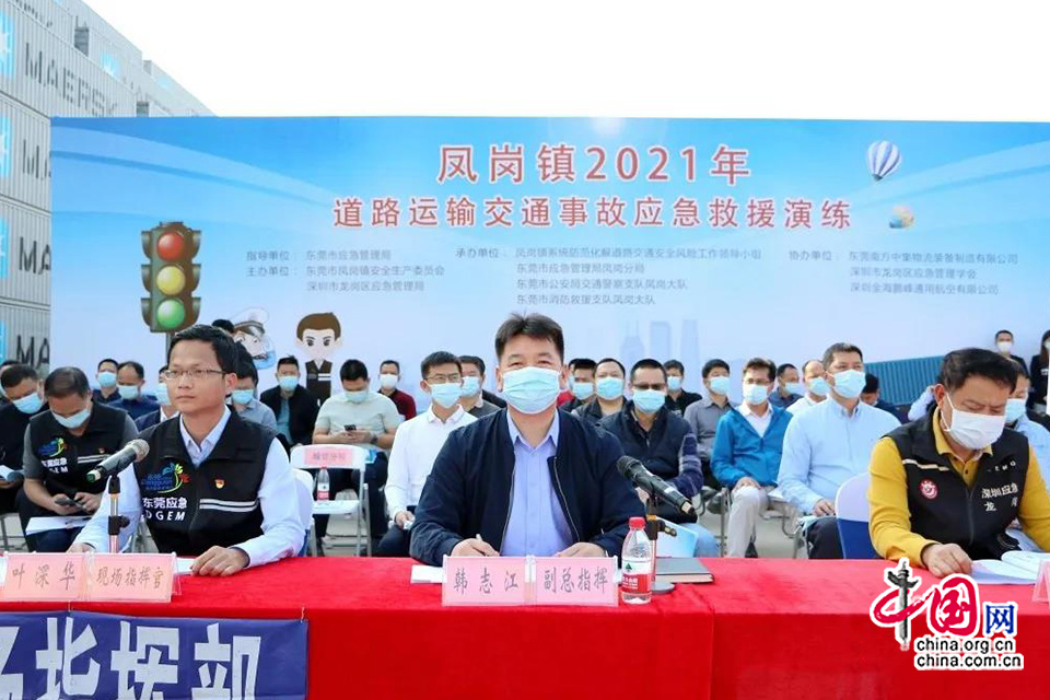 凤岗镇委副书记黄天梁,副镇长、凤岗公安分局局长韩志江及深圳市龙岗区应急管理局应急指挥科相关负责人等参加演练活动。