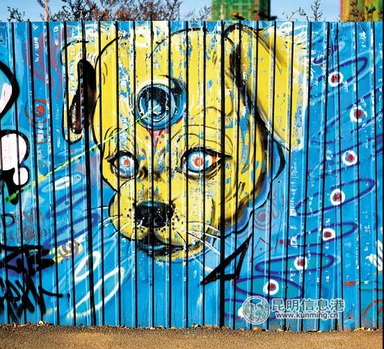 谁说蓝色的围挡一定只和施工有关、一定与噪音牵扯?云南艺术学院呈贡校区的蓝围挡却与艺术相关, 校园内的蓝围挡被该校学生当成涂鸦墙,绘出了一道风景线。