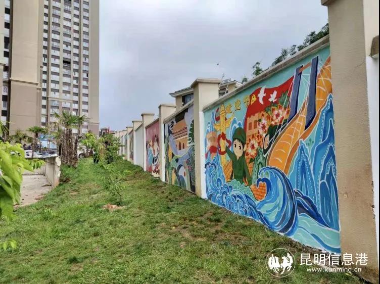 气势恢弘的陆军讲武堂,饱经历史沧桑的西南联大遗址、历经艰难险阻的红军长征过云南皎平渡……这些精彩的红色故事,如今通过一笔一画出现在了呈贡区营盘社区,让原本单调的墙面变得生动起来,成为社区一道靓丽风景。