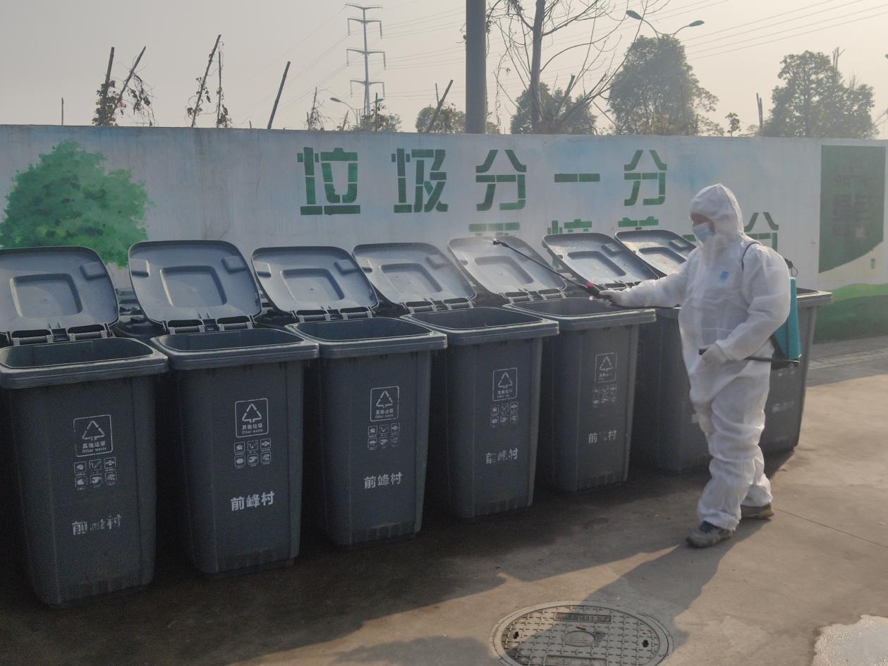图2前进街道前峰村工作人员对垃圾集置点分类设施进行消杀