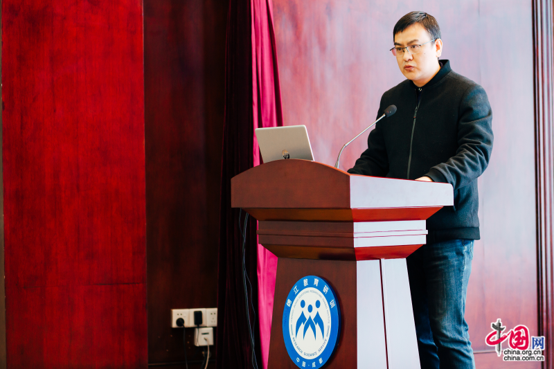 作为项目共同体成员之一的温江区,区教育科学研究培训中心副主任张光伟进行了《基于作业设计成果推广应用的区域行动》的专题发言,他从领会成果的深刻内涵、成果指导的务实实践以及结合区情的持续改进三方面了介绍了温江区的推广经验。