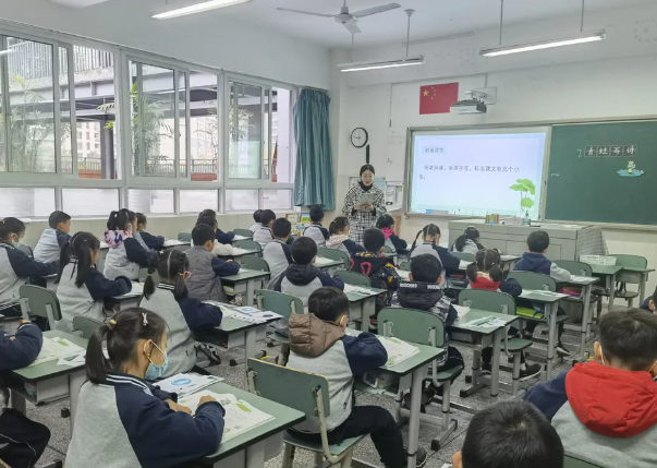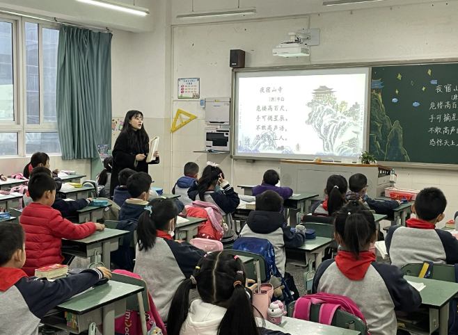 教研员江亚丽老师走进二年级赵心怡老师课堂,就如何有效品读古诗之美进行指导。