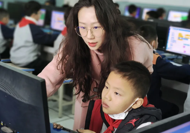 刘黎老师走进曹婷老师执教的信息技术课《益虫与害虫》,就编程课堂如何培养学生计算思维的构建做指导。