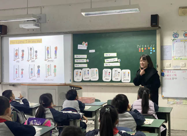 教研员石春蓉老师走进向玲老师、王瑞昕老师执教的一、二年级课堂。指导老师们从单元整体设计视域角度进行词汇课的教学。