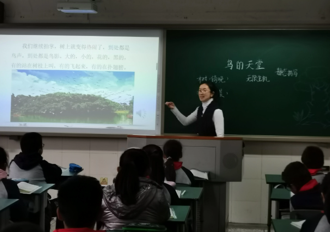 教研员冯芊老师走进五年级谢辰婷老师课堂,就《鸟的天堂》如何让学生对文本进行多元解读,发展学生个性化阅读做指导。