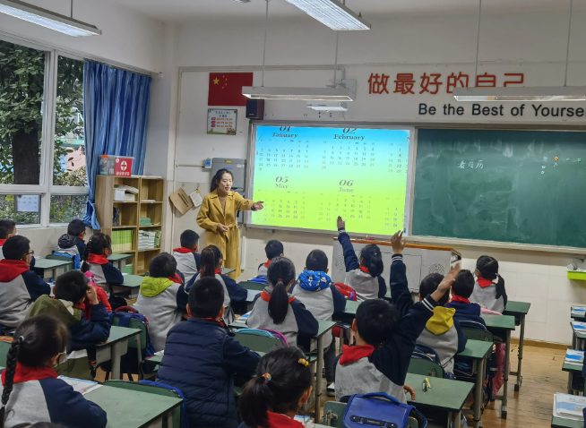 教研员陈利老师走进三年级刘姗老师《年月日》课堂,就学生的深度学习、高阶思维触发做指导。