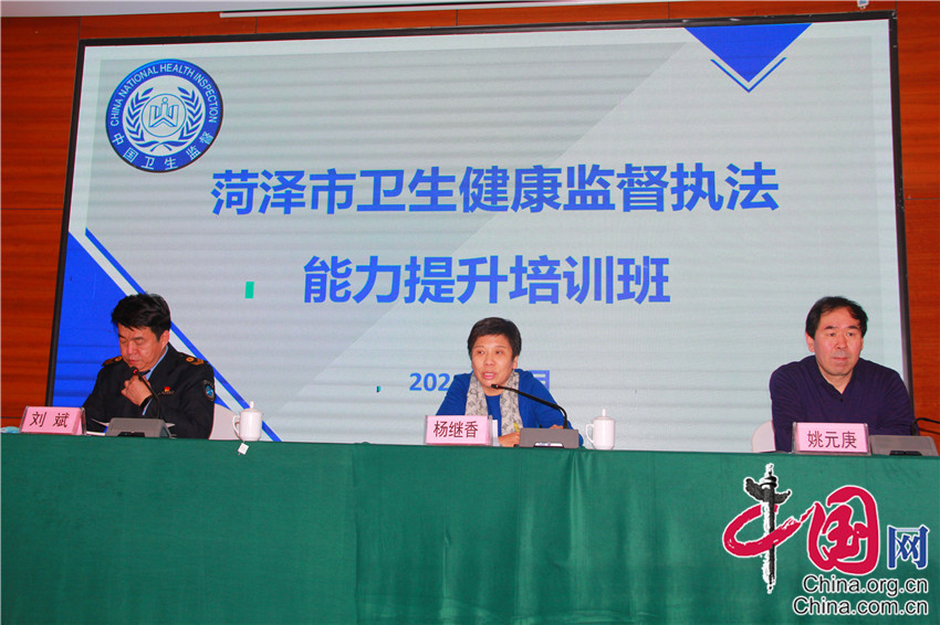 本期培训班,特邀山东省卫生健康委执法监察局公共卫生办公室主任姚元庚,省放射卫生办公室主任刘兵,省职业病管理办公室主任张茹,市司法局副局长韩允谦现场专题授课。菏泽市卫生健康委二级调研员、卫生健康综合执法支队支队长杨继香主持开班仪式。本次培训旨在加强卫生健康监督人员综合执法能力建设、提升执法人员业务水平,全市卫生监督执法人员要以此次培训为契机,进一步提升执法能力和业务水平。