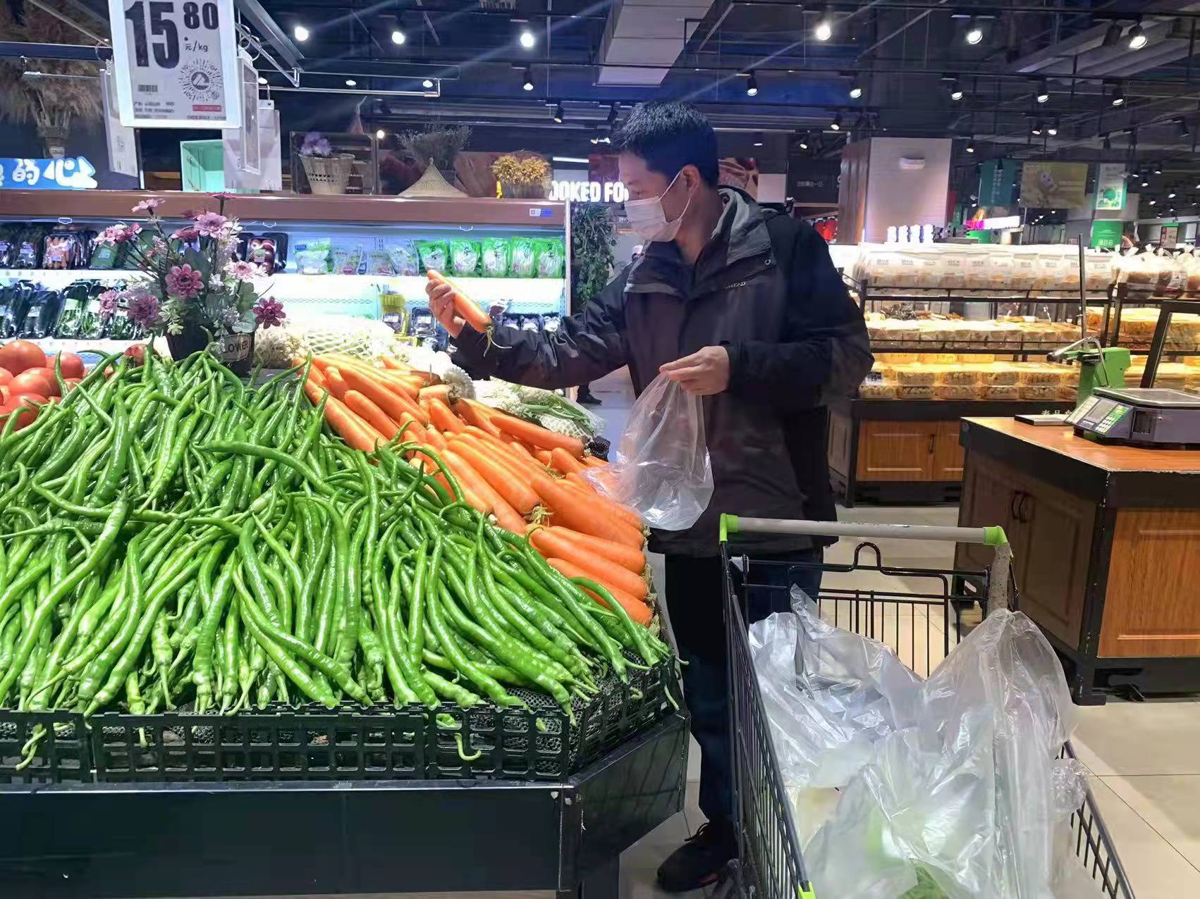 随后,记者还走访了永辉超市、沃尔玛超市等大型商超,这些超市都正常营业、购买有序,货架稍有空缺,就有工作人员及时补货,基本没有断货的情况。永辉超市的店长黄发国表示:“现在整个超市物资准备比较充分,我们现在的蔬菜就有7吨,大米2吨、油3吨,在整个民生保供方面我们是有准备的;物价方面,我们也要保护民生,响应政府的号召,在整个疫情期间,我们不但不会提价,只会有降价行为。”