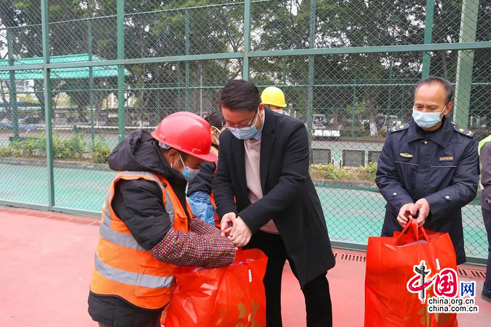 12月28日,高埗镇开展“民生大莞家”— “疫”起送温暖集中帮扶行动。副镇长游锡洪,镇公共服务办将装有御寒衣物、粮油、口罩等物品的抗“疫”暖心福袋送到250名困难环卫工人手中。
